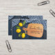 Bois rustique Découpe Citrus Cuisine Script Catering Charcuterie Cartes de visite de fête présente un design simple mais élégant avec une planche à découper en bois bleu rustique avec une superposition de votre nom, nom de l'entreprise, type d'entreprise, désignation ou des informations supplémentaires accentuées de citrons et une serviette de cuisine bleu en vichy à l'avant. Au contraire, vous trouverez vos coordonnées personnalisées, les informations sur les médias sociaux et le code QR personnalisé. Parfait pour une grande variété de marketing d'affaires de la cuisine, la restauration de fête, la charcuterie et antipasto affaires et bien plus encore. Personnalisez en modifiant le texte dans les zones de texte fournies. Conçu par ©Evco Studio www.zazzle.com/store/evcostudio