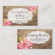 Carte De Visite Bois rustique et Hibiscus rose peint Pays Fleur