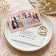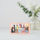 Design carte de visite moderne et branché, avec une mise en page de cinq photos. "Hello" est une typographie conçue et placée sur chaque photo. L'arrière - plan est coloré en pêche légère. L'envers présente les informations de contact conçues dans un agencement propre et minimal.