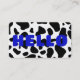 Carte De Visite BONJOUR Vache imprimé noir blanc bleu royal