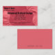 Ce carte de visite de taille standard est conçu avec un arrière - plan de design d'art numérique en spirale rouge avec une bande de balayage couleur canneberge complémentaire à travers le centre. La carte peut servir à votre occupation lorsque vous personnalisez le texte modèle, supprimez tout texte ou modifiez à l'aide de l'outil de conception pour sélectionner un style, une taille et une couleur de police que vous souhaitez. Le dos est vide, laissant de la place pour les notes manuscrites et est dans une couleur complémentaire à l'avant.
