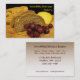 Un affichage de attraction de pain de seigle fraîchement cuit au four, de fromage jaune et des raisins pourpres rouges sur une planche à découper en bois rustique est le thème de ce carte de visite élégant annonçant une boulangerie complètement des pâtisseries, des pains, des bagels, des petits pains, des petits pains, des tartes et de plus. Tout le texte peut être customisé pour adapter à vos différents besoins d'affaires.