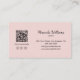 Logo de boulangerie moderne QR Les icônes des médias sociaux Carte de visite rose. Élevez votre marque de boulangerie maison avec ce carte de visite élégant et fonctionnel. Avec un arrière - plan rose doux, il vous permet de créer le logo de votre propre boulangerie, d'ajouter un code QR pour un accès facile à votre site Web ou à votre menu, et de customiser des icônes de médias sociaux pour correspondre à vos plateformes. Parfait pour les petits propriétaires de boulangeries, boulangers maison et pâtissiers qui cherchent à donner une impression durable. Personnalisez avec vos détails pour créer un look unique et professionnel.