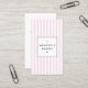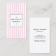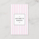 Des rayures roses et blanches chic apportent une personnalité rétro à ce carte de visite de boulangerie. Comme dans les salons de crème glacée et les confiseries d'hier, ce design apportera une touche de nostalgie à votre marque d'affaires. Créé pour les boulangeries, les décorateurs de gâteaux, les traiteurs, les bonbons, les pâtisseries maison ou toute entreprise à la recherche d'un motif élégant. Votre nom est simplement stylisé dans un carré blanc à l'avant, tandis que vos coordonnées et détails sont disponibles à l'arrière. Design © 1201AM Design Studio
