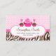 © 2012 Socialite Designs Inc. La conception de carte de visite de boulangerie de Whimsical a nos éléments de conception de cupcake et de pâtisseries avec polka-dot et zebra stripes arrière - plan. Un joli ruban à pois polka à l'avant et à l'arrière. Toutes les conceptions sont protégées par le droit d'auteur. La plupart de nos designs sont créés par Socialite Designs et sont protégés par Copyright et ne peuvent pas copier, numériser, dérivés faits de, altérés, dupliqués, photographiés, captures d'écran prises, ou volés sur le web où les designs sont présentés. Nos designs ne sont vendus que sur Zazzle. Si vous trouvez un de nos designs, ou un dérivé de l'un de nos designs utilisés illégalement sur le web, veuillez nous contacter. Le téléchargement, l'enregistrement ou la revente de matériel protégé par le droit d'auteur est interdit et donnera lieu à un procès. Il est interdit de numériser tout matériel imprimé que vous avez acheté par Zazzle.