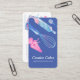 Fun, cake fantaisie & créative, pâtisserie, et douceurs pâtisserie carte de visite design. Notre design se compose de notre disposition de conception fantaisiste dessinée à la main de divers outils et ustensiles de cuisson disposés astucieusement autour du carte de visite pour créer ce design créatif fantaisiste inspirée de la boulangerie. (Rolling pin, cuillère, fouet et sac de pâtisserie décoré dans un beau et amusant style de glace miroir rose marbre, bleu et violet. Customisez avec votre nom commercial, votre site Web ou votre slogan. Le revers de la page comprend un gâteau en glaçure à miroir incliné avec des ustensiles de boulangerie amusants disposés autour et personnalisés avec vos coordonnées d'entreprise, nom, et poignée de médias sociaux. Un carte de visite de boulangerie ludique et créatif parfait pour la maison boulangerie, boulangerie, boulanger entrepreneur, chef, traiteur, et bien plus encore. Toutes les oeuvres d'art et les logos contenus dans le carte de visite de notre boulanger sont des oeuvres d'art originales dessinées à la main par Moodthology Papery.