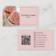 Laissez-vous tenter par ce carte de visite de boulangerie chic et personnalisable, doté d'un arrière - plan rose doux, que vous pouvez facilement changer pour correspondre à votre marque. Ajoutez votre propre photo sur le devant pour présenter vos délicieuses friandises, et personnalisez les détails pour s'adapter à votre entreprise. L'arrière de la carte comprend des icônes remplaçables et un code QR scannable, parfait pour partager votre menu, services ou informations de contact avec un balayage rapide. Idéal pour les boulangers, pâtissiers et boulangers qui veulent faire une impression douce et professionnelle.