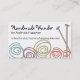 Des boules de fils doodled amusantes et colorées avec des aiguilles de tricot sur ces cartes de visite pour des produits d'artisanat et des spectacles artisanaux.
