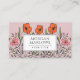 Bouquet fantaisiste de fleurs sauvages oranges et roses stylisés et de cartes de visite roses feuillues vertes, avec votre nom dans un élégant style serif classique.