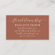 Ce magnifique carte de visite couleur terre cuite est orné d'un bouquet floral blanc de saumons boho et d'une belle typographie de script.