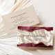 Cette élégante carte de visite moderne présente une image de soie en ivoire, encadrée sur le dessus et le bas par des bordures d'agate d'aquarelle rouge bordeaux et ornées d'une fausse parties scintillant dorée brillante. Personnalisez-le avec votre nom dans un script de style écriture manuscrite non-noir et vos informations d'affaires dans la police sans serif. L'inverse est une ombre de coordination de l'ivoire solide. Idéal pour les coiffeurs, maquilleurs et esthéticiennes.