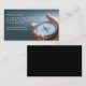 Carte de visite professionnelle avec en fond l'image d'une main tenant une boussole sur un fond bleu dégradé.