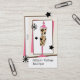 Un carte de visite parfait pour un magasin de vêtements ou une boutique. La carte présente une illustration vintage d'inspiration rétro des années 1950 d'une robe rose et empreinte de léopard. La forme de la robe est entourée d'étoiles décoratives et de arrière - plan rose, blanc et marron. Personnalisez le texte à l'avant et à l'arrière.