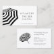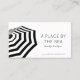 Un parapluie de plage rayé noir et blanc chic crée un motif abstrait sur ce modèle de carte de visite design. Mettez à jour le texte avec votre propre nom ou nom commercial. Conçu pour capturer l'essence du luxe dans un design simpliste. Idéal pour les cafés, les locations de plages de vacances, les boutiques, les décorateurs, les salons de bronzage et plus encore. Art et design © 1201AM Design Studio | www.1201am.com
