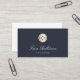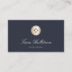 Des cartes de visite élégants pour couturiers, couturiers, tailleurs, altérations, costumiers ou nettoyeurs à sec présentent une illustration de bouton chemise en fausse feuille d'or, sur un arrière - plan bleu marine riche avec deux lignes de texte personnalisé en blanc. Customisez le dos avec vos coordonnées complètes.