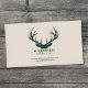 A business card with an elegant silhouette of deep forest green branching deer antlers against a cream-colored background, in an aesthetic, minimalist, and nature-inspired designed. It could be used for company such as taxidermist, hunter, wildlife & outdoor-related activities, travel agency, antiques stores, insurance, collector shop, etc.
