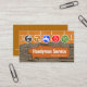 Cover features a brickwork and wall plaster design. Over at the top, is an array of colorful handyman tools icon which can represent some of the services that you offer. Just below this, in a brown cut off space lies the business name "Handyman Service" alongside your prestigious name.