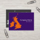Un carte de visite avec une carte des îles britanniques. Détails de l'entreprise sur l'avant avec nom et coordonnées sur l'arrière dans un style tonal contrastant avec l'avant.