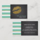Mint Green Stripes & Faux Gold Shine Lips Carte de visite chic