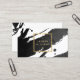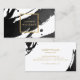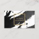 Les touches de peinture noire et épaisse créent un arrière-plan abstrait sur ce modèle de carte de visite de concepteur. Votre nom ou nom d'entreprise est affiché dans une fausse boîte dorée sur le devant pour une esthétique moderne. Cette carte recto verso permet une grande place sur l'arrière pour vos coordonnées. Une carte ludique et attrayante pour les professionnels créatifs. Art et design © 1201AM Design Studio | www.1201am.com