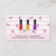 Brosses de maquillage et clous polonais design Carte de visite est un design glamour et attrayant. Idéal pour les maquilleurs, les coiffeurs, les esthéticiennes, les cosmétologistes et ceux de l'industrie de la mode et de la beauté. Ajoutez vos informations et personnalisez à votre goût. Recommander de choisir un carte de visite épais ou de lin de qualité supérieure pour une qualité accrue. Pour toute demande de conception, contactez le concepteur. ©2010 Joshua Martin