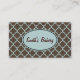 Une élégante motif marron et aqua orne cette carte de visite élégante. Customisez ce carte de visite pour répondre à vos besoins. Le design est de l'art original. Utilisez ce carte de visite professionnel pour une boulangerie, salon, rendez-vous, un dentiste, etc...