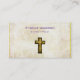 Un design carte de visite professionnel adapté aux religieux / clergé / prêtres ou autres professions connexes. Une croix en bois dans les tons brun foncé autour de la frontière lui donnant un aspect brûlé tandis que le reste de la croix est un brun doré avec des lignes et des gravures dans le bois. L'arrière - plan est une texture avec un aspect de parchemin défraîchi en blanc doux et marron.