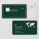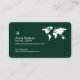 A modern and elegant idea to promote tourism professionals... Company logo, your name with custom travel related occupation (travel agent) and a small airplane... and address for contact, and profession related words at the back, with the image of the map of the world... a very deep green and white design.