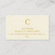 Un carte de visite professionnel minimaliste crème avec texte de couleur or. La carte a le nom de l'entreprise sur le devant avec le verso ayant les informations de l'entreprise. Le dos avait également une initiale élégante représentant le nom de votre entreprise ou votre nom. Il peut également être supprimé si vous le souhaitez. Élégant et simple. Une carte professionnelle adaptée aux spas ou professionnels de la cosmétique ainsi qu'un avocat. D'une gamme de Fine Designs de Chessie. Visualisez la collection via le lien plus loin dans la page produit.