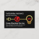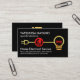 Une couverture entièrement noire est équipée d'un câble électrique de maison en faux or créatif qui a une jauge électrique rouge au centre. En haut de la carte se trouve votre nom prestigieux et votre titre professionnel. Vers la base est le nom d'entreprise "Home Electrical Service" avec les coordonnées. Un logo de bouchon doré que vous pouvez utiliser est en haut. Il est suivi de votre nom prestigieux, des coordonnées et d'une option de légende de slogan que vous pouvez changer pour répondre à vos besoins de service. Toutes les lettres sont en faux or. C'est une carte créative faite pour les électriciens. #électricien #électricité #entrepreneur électrique #réparations électriques #électricité #ingénieur électrique #éclairage #bulbe #plug #zazzlemade