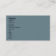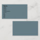 Carte de visite, taille : États-Unis : 8.9 cm x 5.1 cm, papier : Standard Semi-brillant, coins : Carré