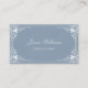Il a un cadre vintage élégant avec des décorations baroques en faux argent dans les coins. L'arrière - plan est bleu poussiéreux. Sur le devant, le nom" est écrit dans un élégant script calligraphique. Tout le texte est gris, comme le cadre. L'arrière - plan avec ses élégantes décorations baroques est tiré d'une reliure vintage à couverture française, par Georges Mercier (1885-1939) - Madame de Maupin par Teophile Gautier, volume 1, édition 1911, Paris - maintenant dans le domaine public.