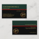 Une colonne vert émeraude et noire est délimitée par une ligne rouge. Dans le coin supérieur, vous trouverez votre nom prestigieux et votre titre de poste avec un slogan "où l'excellence est seconde nature" dans la direction opposée. Modifiez la légende pour qu'elle corresponde à vos besoins en matière de service. En dessous de la légende se trouve le logo d'un majordome en or que vous pouvez utiliser. Le nom commercial et les coordonnées se trouvent à gauche du logo. Au-dessus de la feuille, le même thème de conception est utilisé. Votre nom prestigieux est juste au-dessus de la ligne rouge suivie des coordonnées avec l'option slogan près de la base. Près du mur gauche se trouve le logo or. Une carte design professionnelle pour les majordomes.