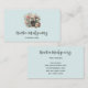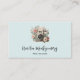 Business cards with a vintage styled camera decorated with flowers. Pastel colors of pink, cream and green.