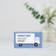 Un simple dessin d'un camion de livraison se trouve à l'avant de la carte. Votre nom d'entreprise, votre slogan, votre nom, votre titre et votre numéro de téléphone sont imprimés sur le panneau latéral du camion comme s'il y avait été peint. Le camion est blanc avec du lettrage bleu et noir. Le camion est tiré dans un style minimaliste, presque caricatural. Derrière le camion se trouve un arrière - plan bleu clair solide qui va avec le lettrage bleu. Le dossier contient des informations supplémentaires sur les contacts. Bon pour les types d'entreprises suivants: camionnage, livraison, expédition, logistique, déménagement, transport et toute autre entreprise qui utilise un gros camion.