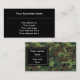 Carte de visite élégante, élégante et sophistiquée avec motif de camouflage en vert et marron. Design moderne et tendance, parfait pour les soldats professionnels, le personnel militaire et les aviateurs.