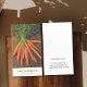 Elégant modèle de carte de visite entièrement personnalisable avec une photo de studio professionnel de carottes. Parfait pour les nutritionnistes, les fermes, le chef, les professionnels de la santé et des services alimentaires.