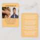Customisez cette carte mémoire commémorative ou commémorative avec un poème pour soulever et encourager la menuiserie et votre photo 5x7 J'ai entendu votre voix dans le vent aujourd'hui et je me suis tourné pour voir votre visage. La chaleur du vent me caressait alors que je me tenais en silence en place. J'ai senti votre touche au soleil aujourd'hui alors que sa chaleur remplissait le ciel. J'ai fermé les yeux pour votre étreinte et mon esprit s'est envolé haut. Je t'ai serré dans mon coeur aujourd'hui. Ça m'a fait me sentir complètement. Oui, tu es mort, mais tu n'es pas partie. Tu fais toujours partie de moi. Tant que le soleil brille, que les pluies tombent, que les vents soufflent, vous vivez en moi pour toujours. C'est ce que mon coeur sait.