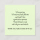 Trois tiges de bambou en spirale sur le devant de ce carte de visite carré est un design unique pour informer les autres de votre changement d'adresse Web. L'aménagement est réalisé sur un arrière - plan vert pastel. Personnaliser est aussi simple que d'ajouter votre nouvelle adresse dans le champ modèle au recto de la carte. Bien sûr, vous pouvez également modifier d'autres textes à l'avant et à l'arrière dans les champs de modèle, supprimer tout texte et cliquer sur personnaliser pour sélectionner le style, la taille et la couleur de la police que vous préférez.