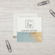 Carte De Visite Carré Aqua Blue Gold Paint Texture Logo QR Code
