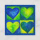 Carte De Visite Carré Aquarelle bleu vert peint Coeur Art Amour