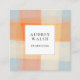 Carte De Visite Carré Aquarelle Plaid Orange Crème Bleu professionnel
