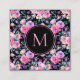 Carte De Visite Carré Aquarelle rose florale Monogramme