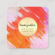 Carte De Visite Carré Aquarelle rouge orange Artiste peintre Abstrait ré