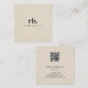 Carte De Visite Carré Beige Linen Fabric Effect Elegant QR Code
