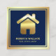 Carte De Visite Carré Blue Gold Foil Home Logo Agent immobilier