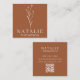 Carte De Visite Carré Boho Chic Minimaliste Terracotta Fleur QR Code