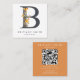 Carte De Visite Carré Boho Fleur sauvage initial B QR Code