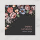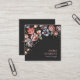 Style peint à la main fantaisie vive fleurit sur un carte de visite carré noir unique avec votre nom et votre titre. Des teintes de pêche, rose, vert, bleu et violet pastel. Customisez au dos de la carte. Votre nom et votre titre sont en couleur, des icônes de médias sociaux sur le dos en rose pêche pour correspondre aux fleurs.