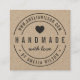 carte de visite rustique kraft des médias sociaux avec le mot "fait main" en caractères gras, "avec amour" en écriture moderne, un coeur mignon et une double bordure ronde pour votre adresse web et son nom en gras le tout en gris foncé. Cet élégant carte de visite carré est idéal pour les artisans, les amateurs et les fabricants de produits faits à la main tels que les artistes, les tricots, les couturiers, etc. Cela fera aussi une grande faveur à l'étiquette, à l'étiquette de produit ou à l'étiquette d'emballage.